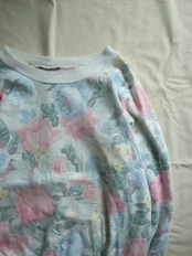 80年代のスウェットやTシャツに多く見られる「パステル調+水彩画風のフローラル総柄」が特徴的でたり