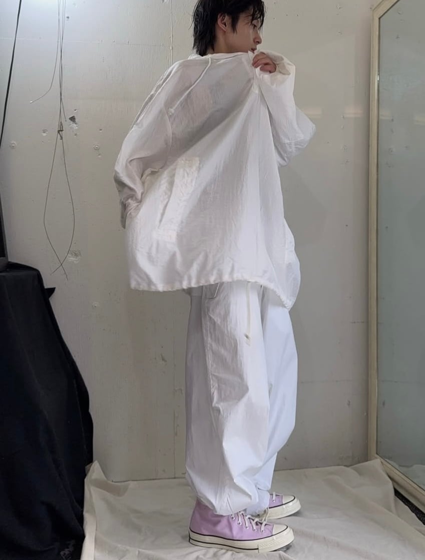 本来は寒冷地でのカモフラージュ用にオーバーパンツとして着用されていたモデルで、ゆとりあるシルエットとドローコード仕様が特徴です。