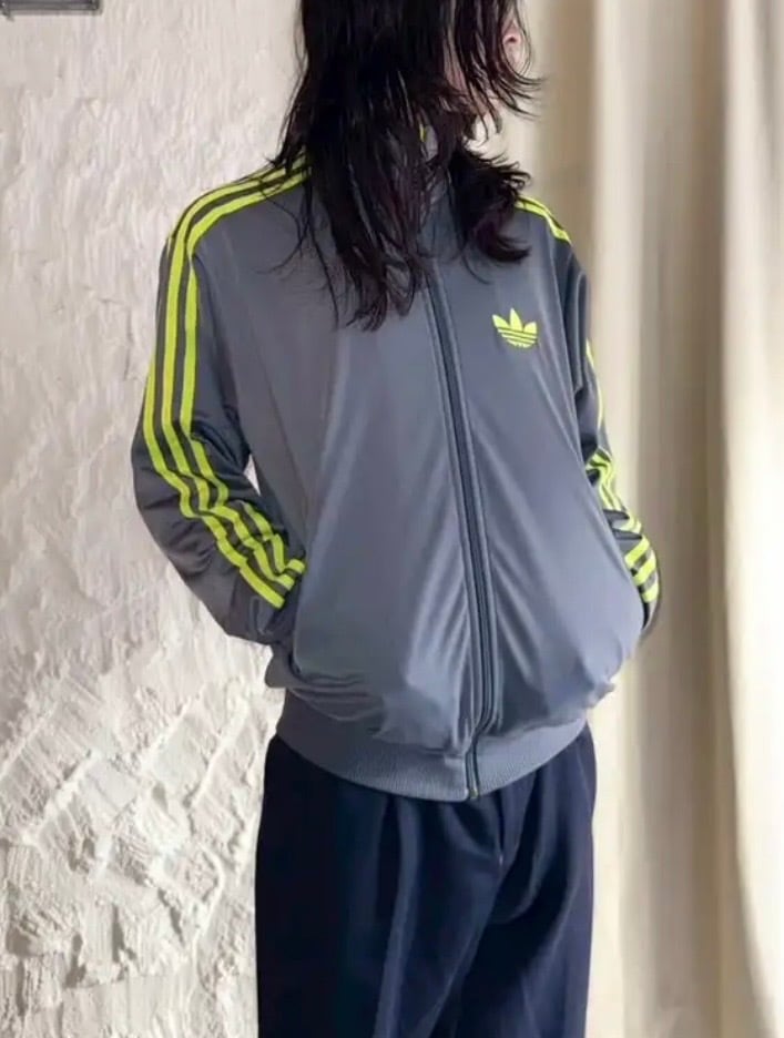Adidas Track jacket grey × limeyellow