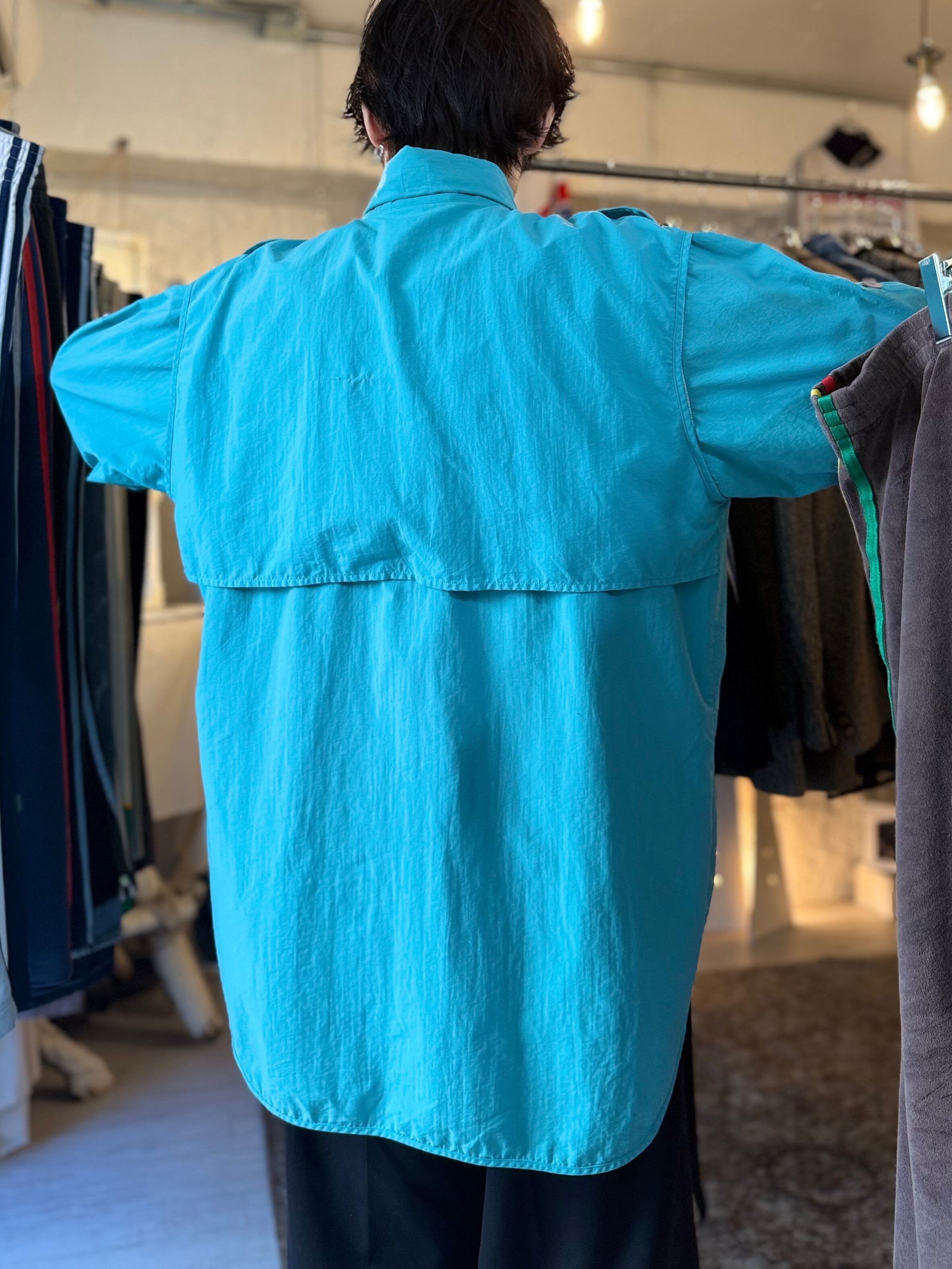 鮮やかなティファニーブルーが目を引くナイロンシャツ。