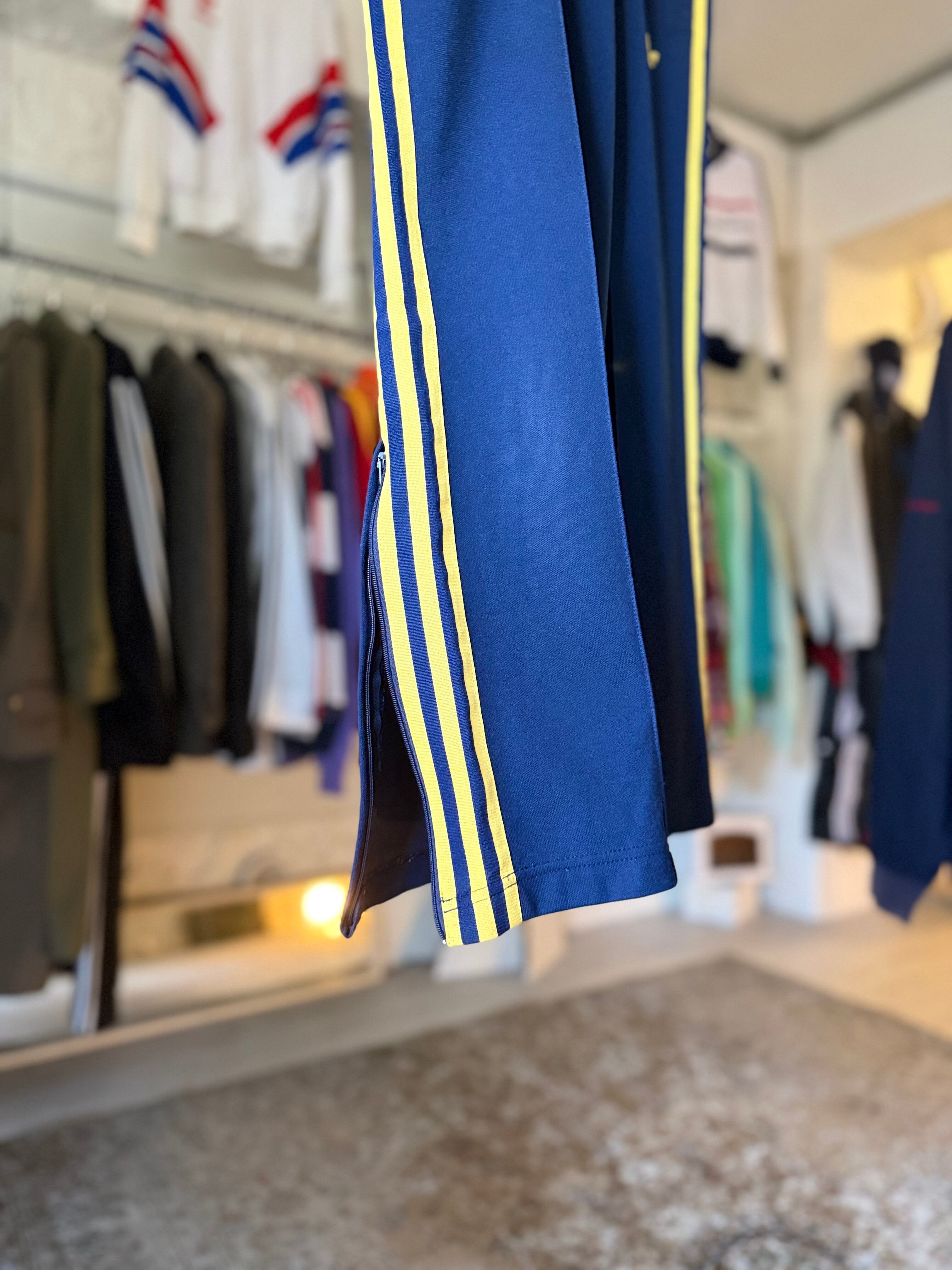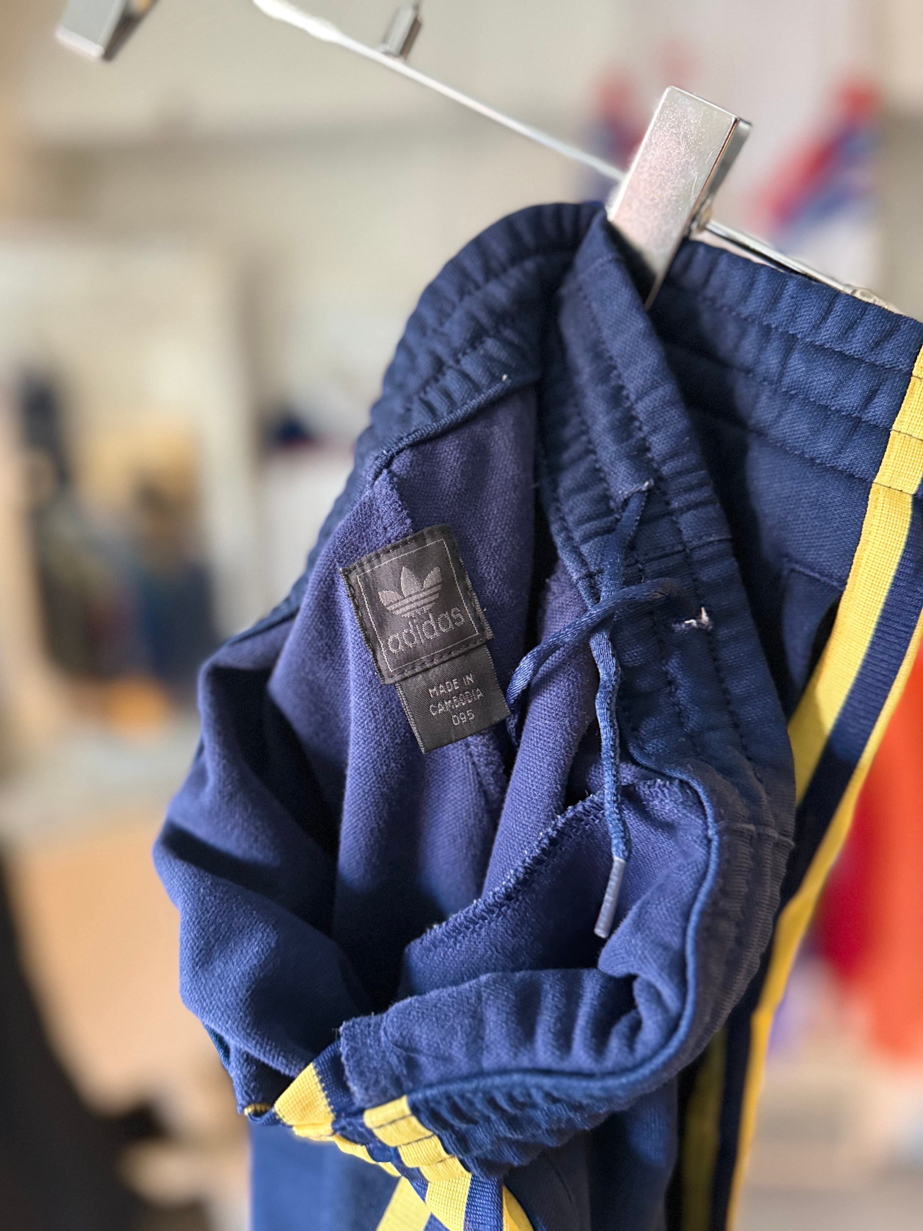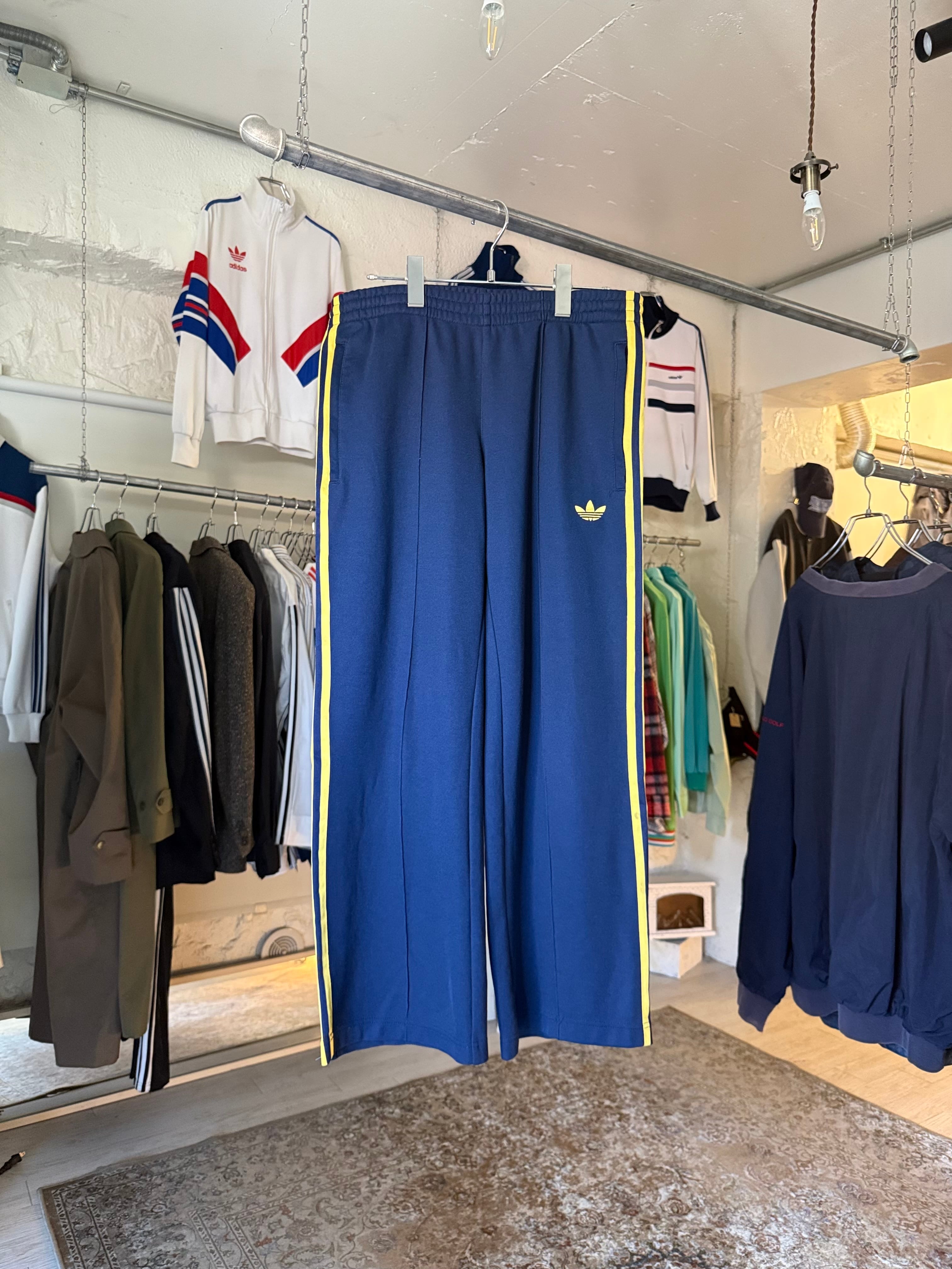 adidas track pants (navy × yellow)