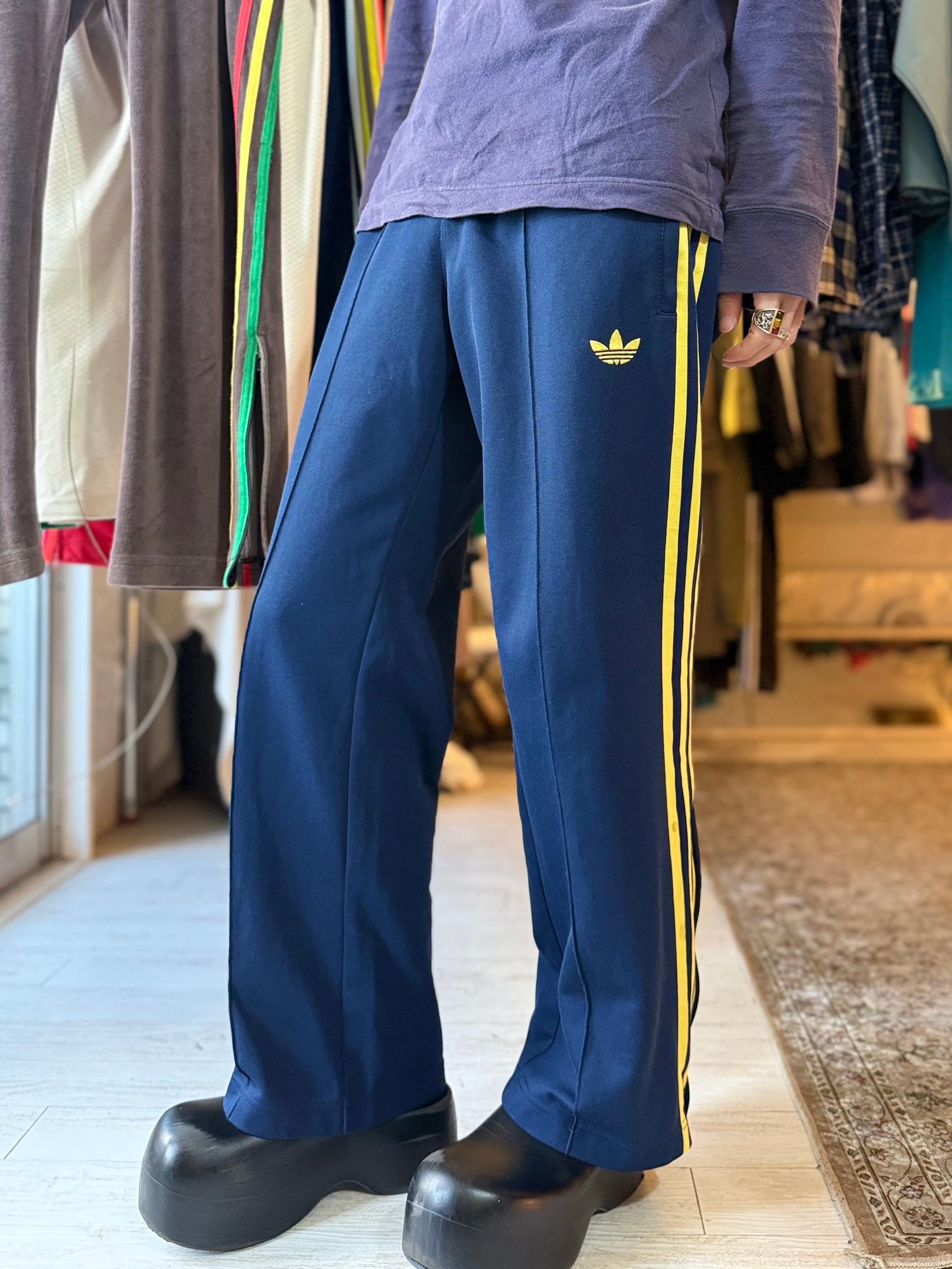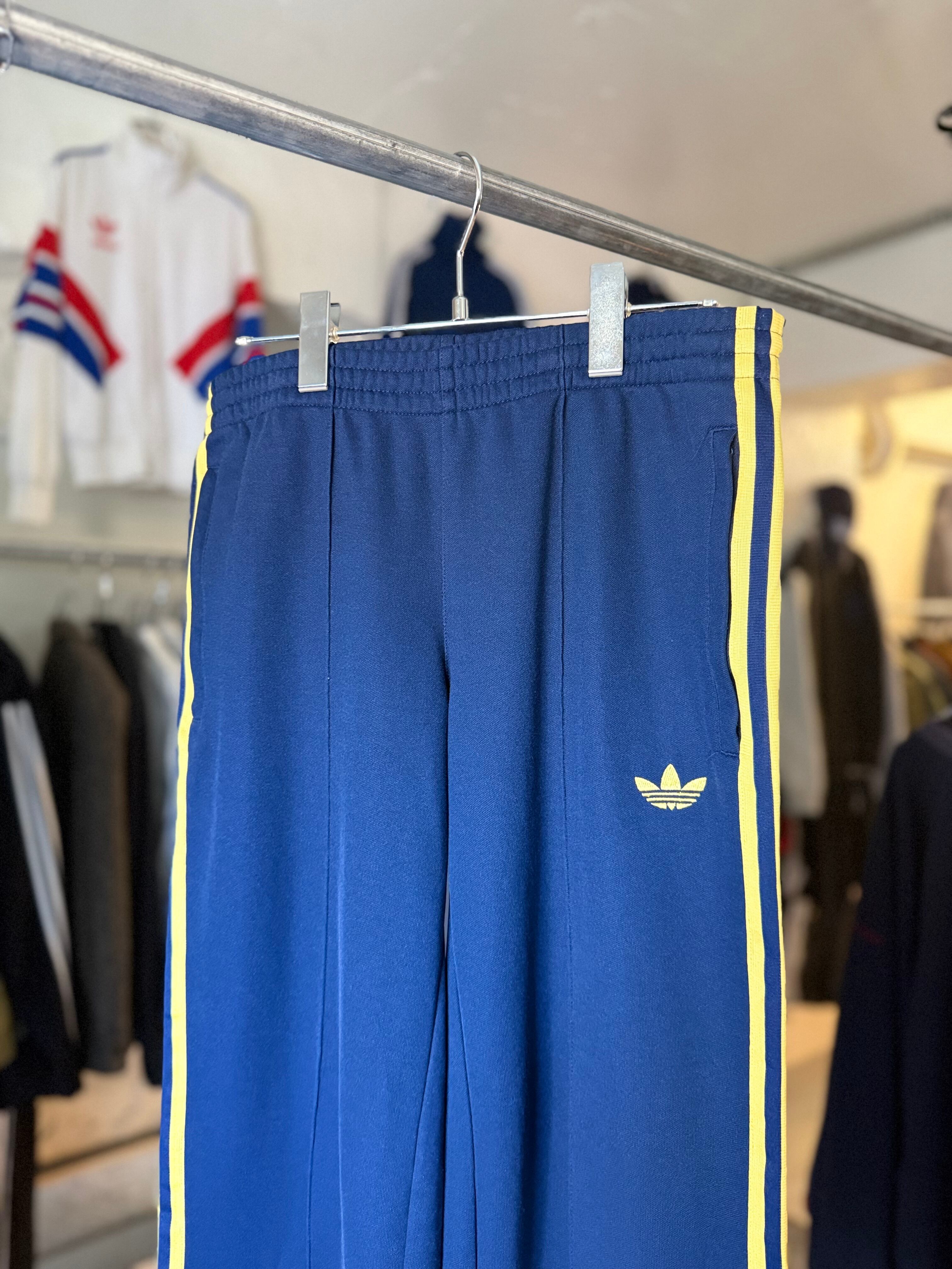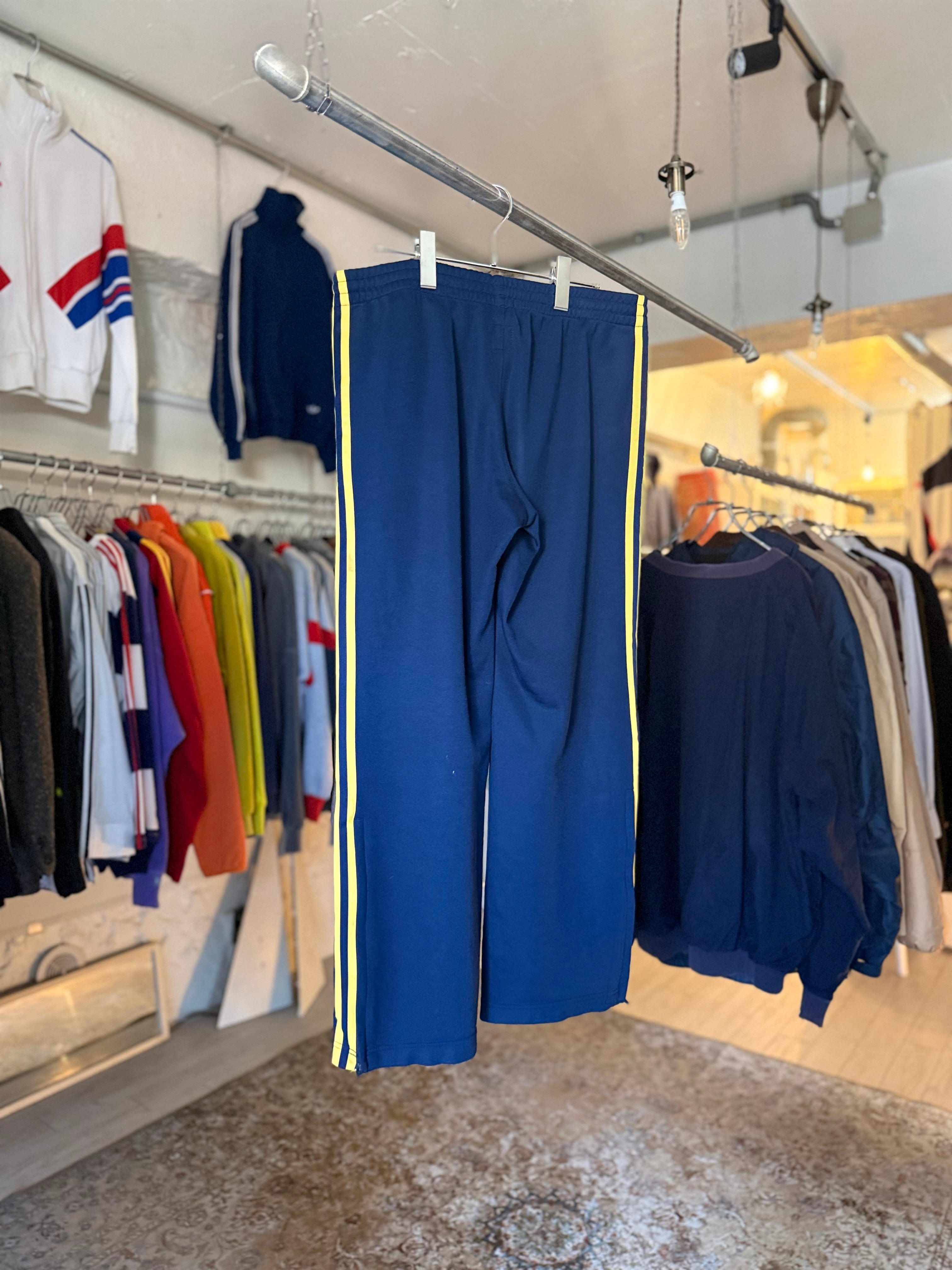 adidas track pants (navy × yellow)