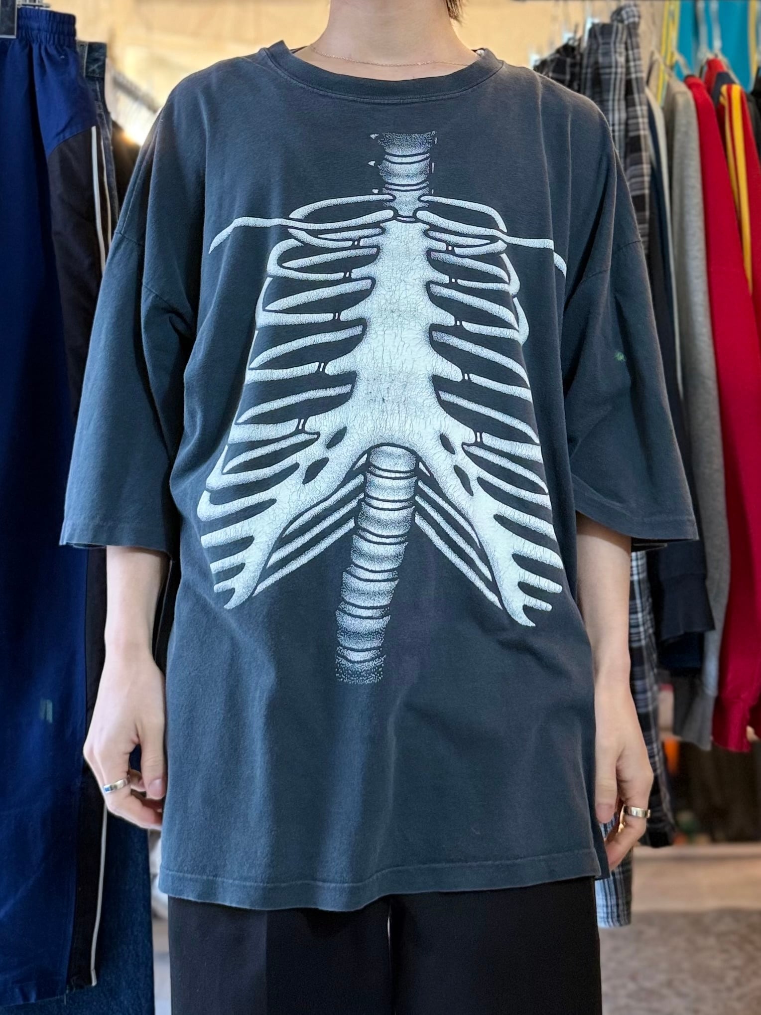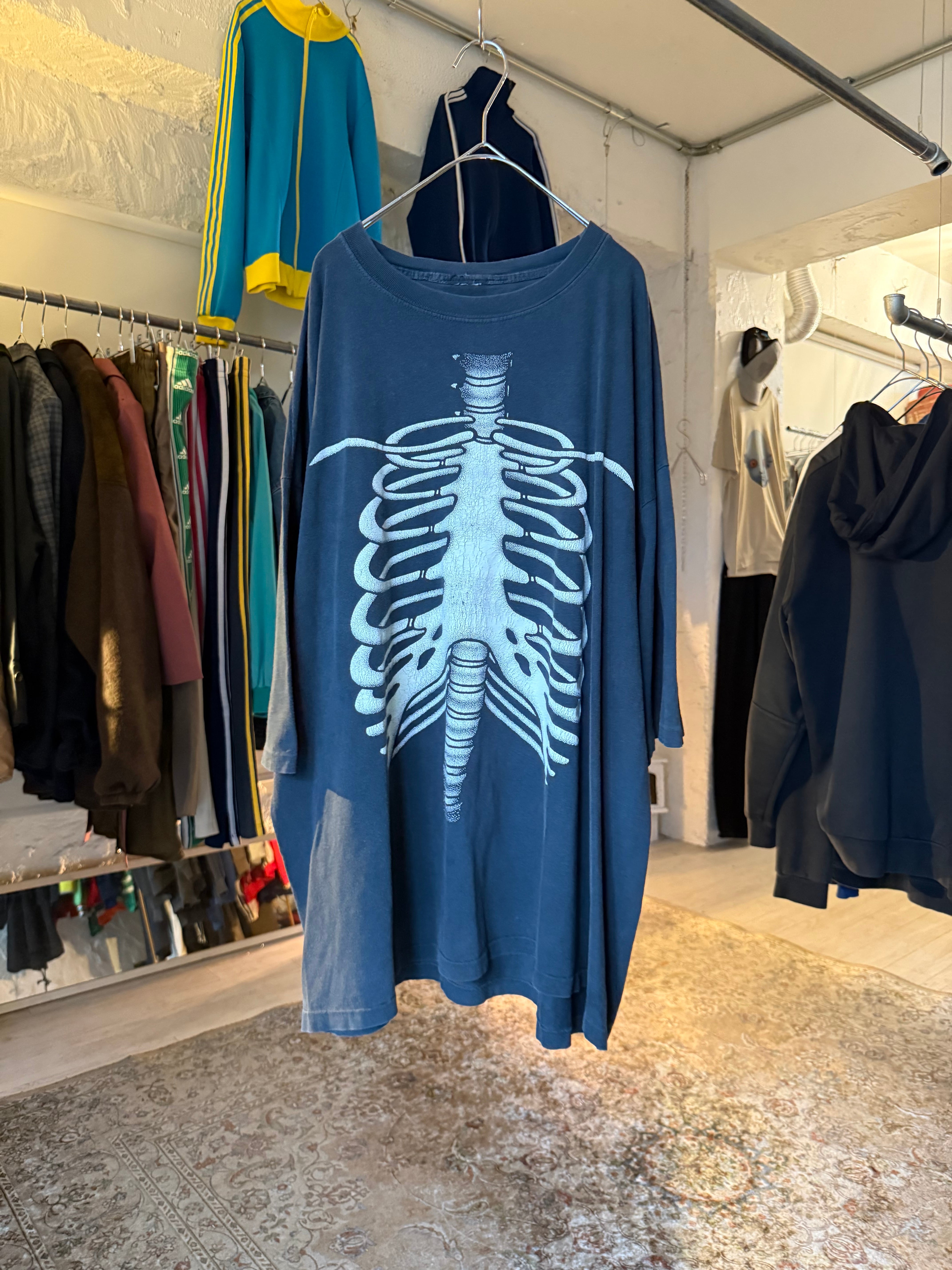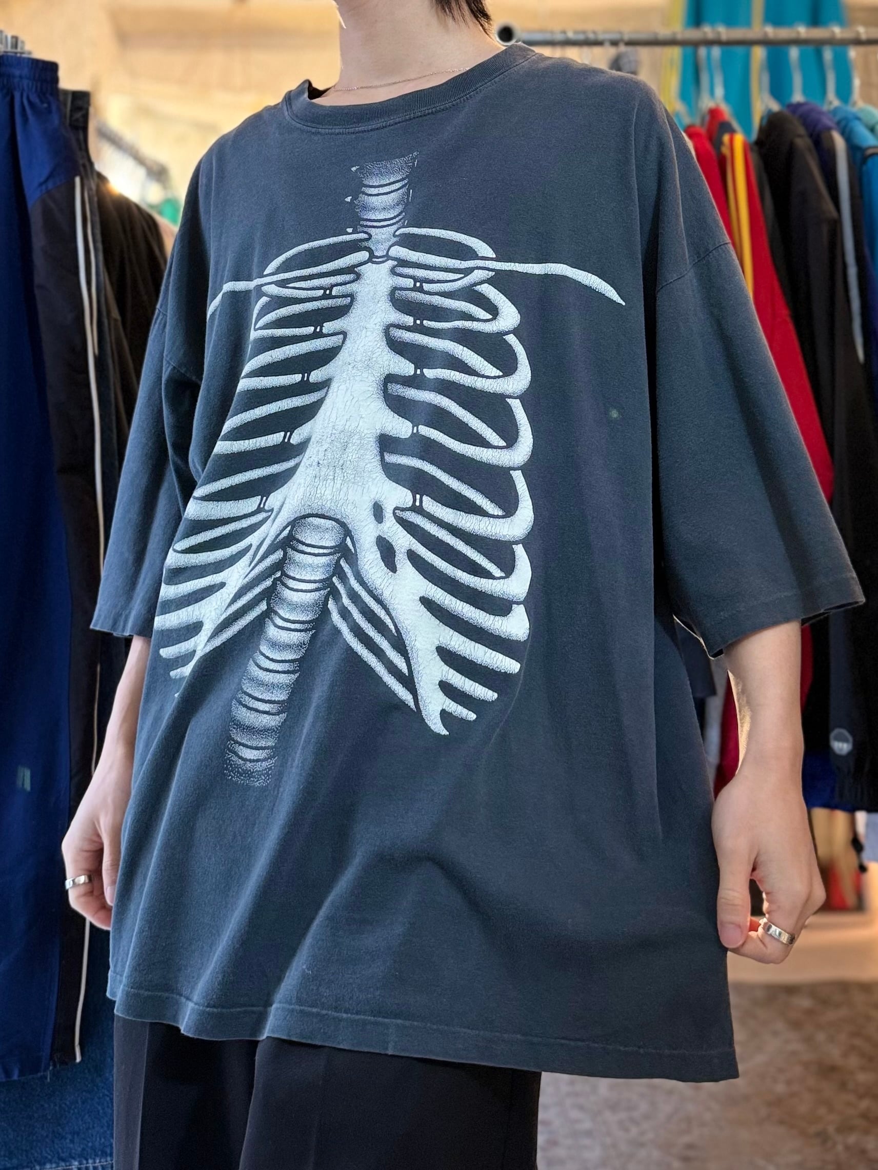 90s skeleton print tee fade black