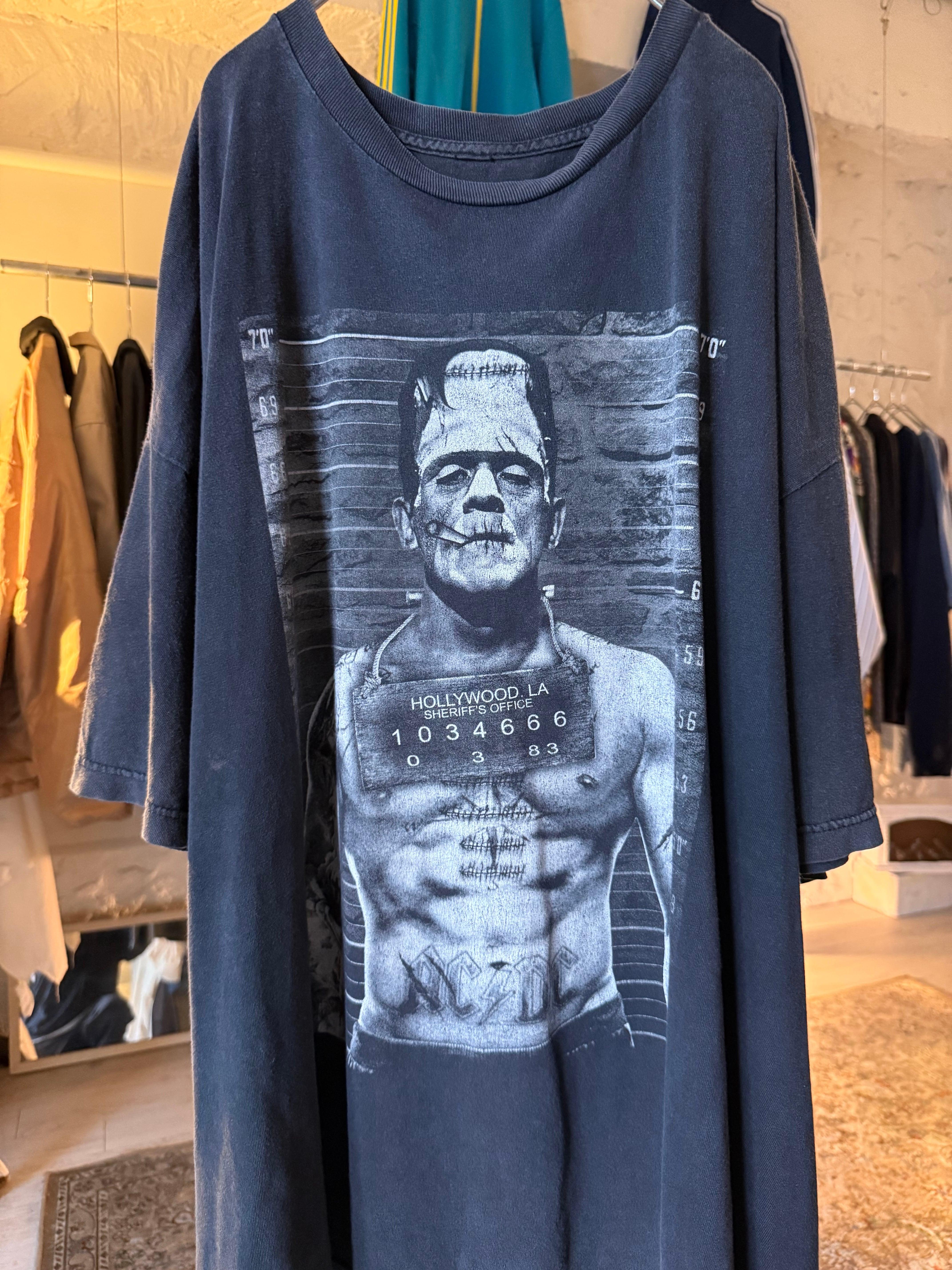 Frankenstein Mugshot Graphic T-shirt fadeBlack