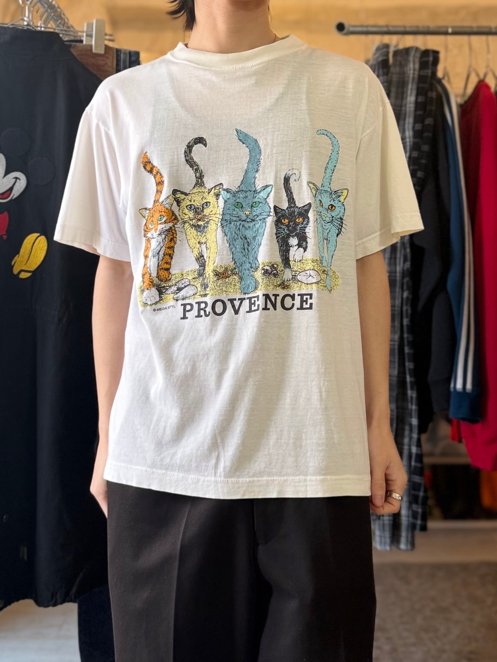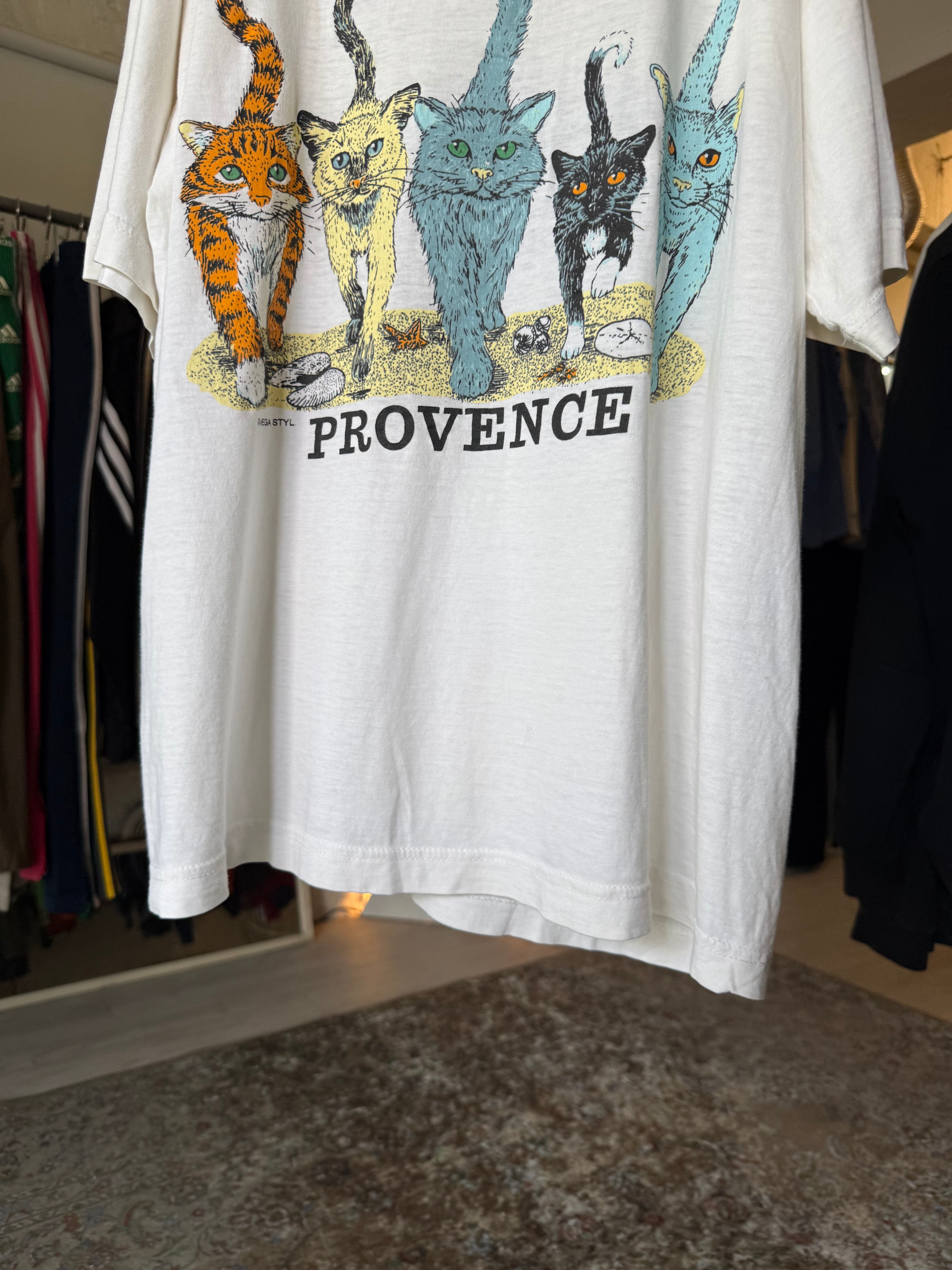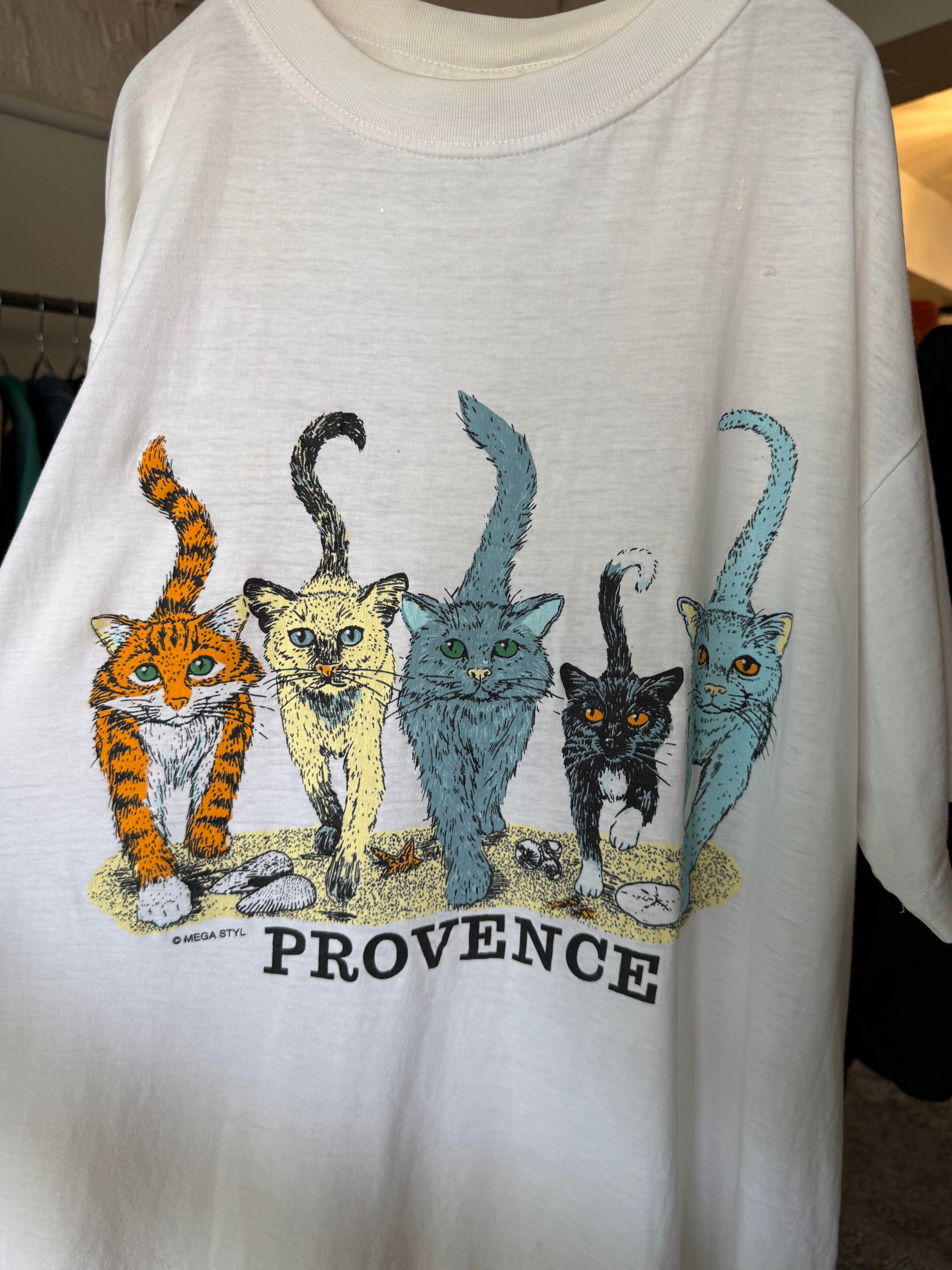 90s European Cotton Provence Cats T-shirt White