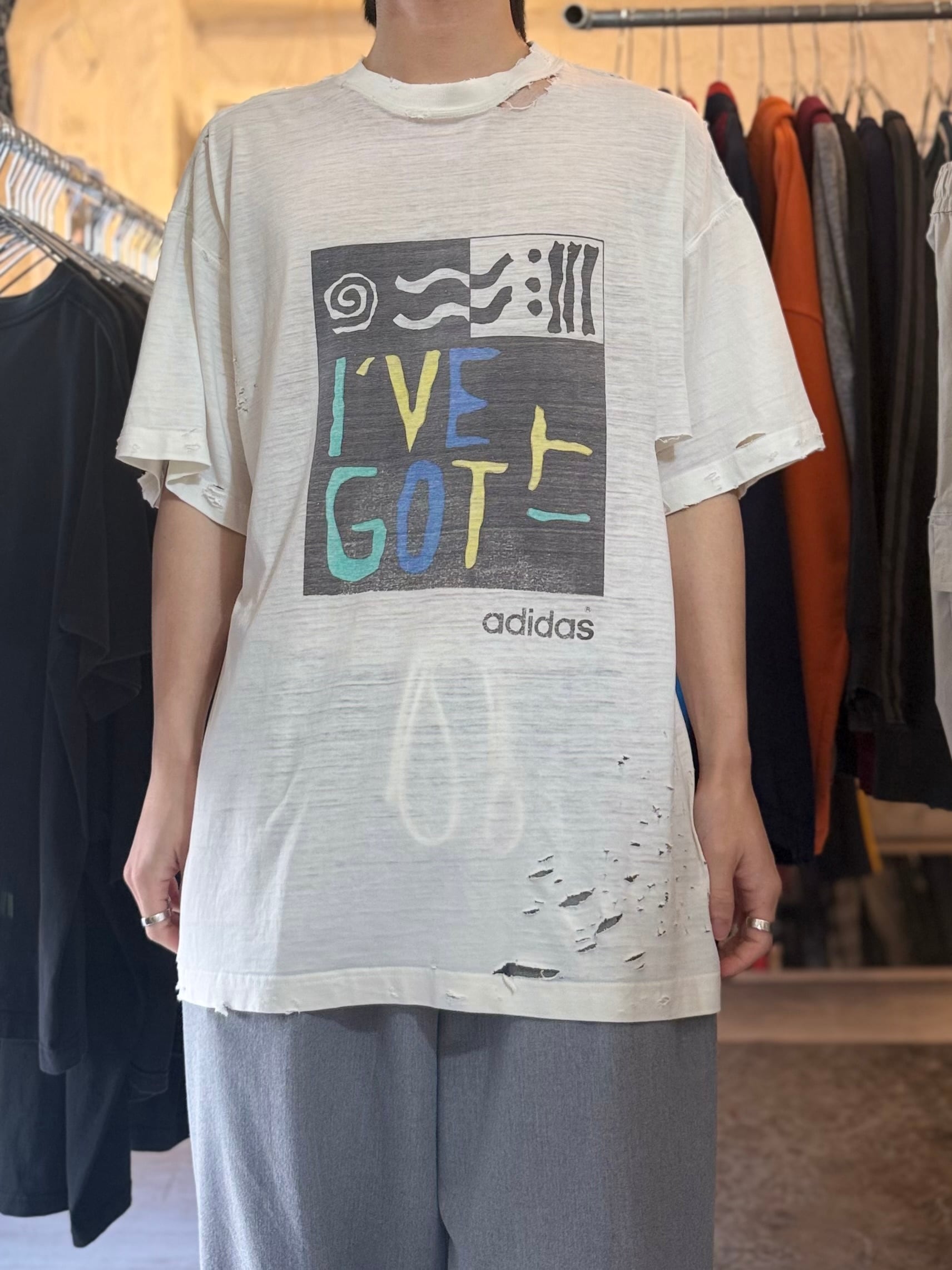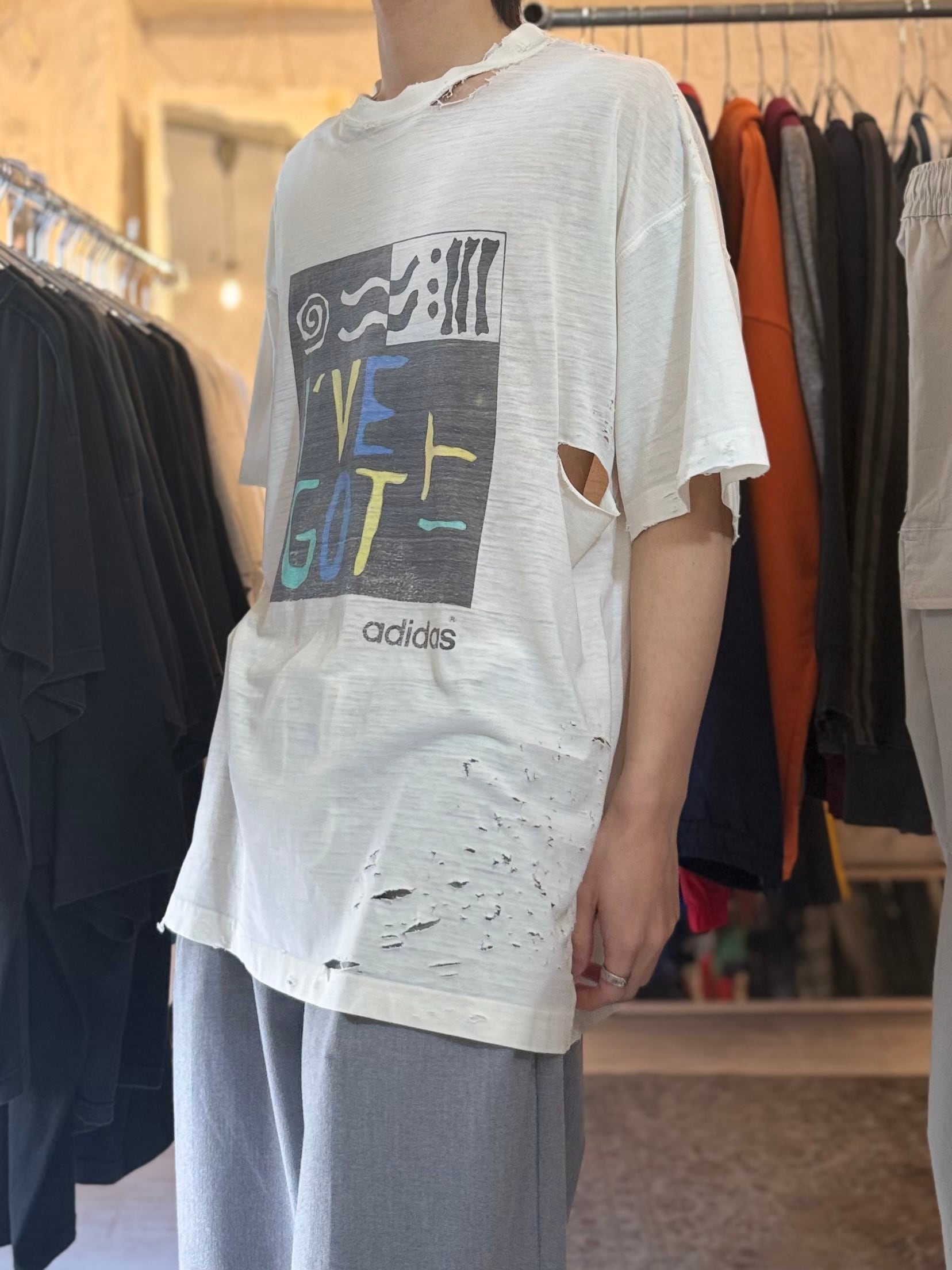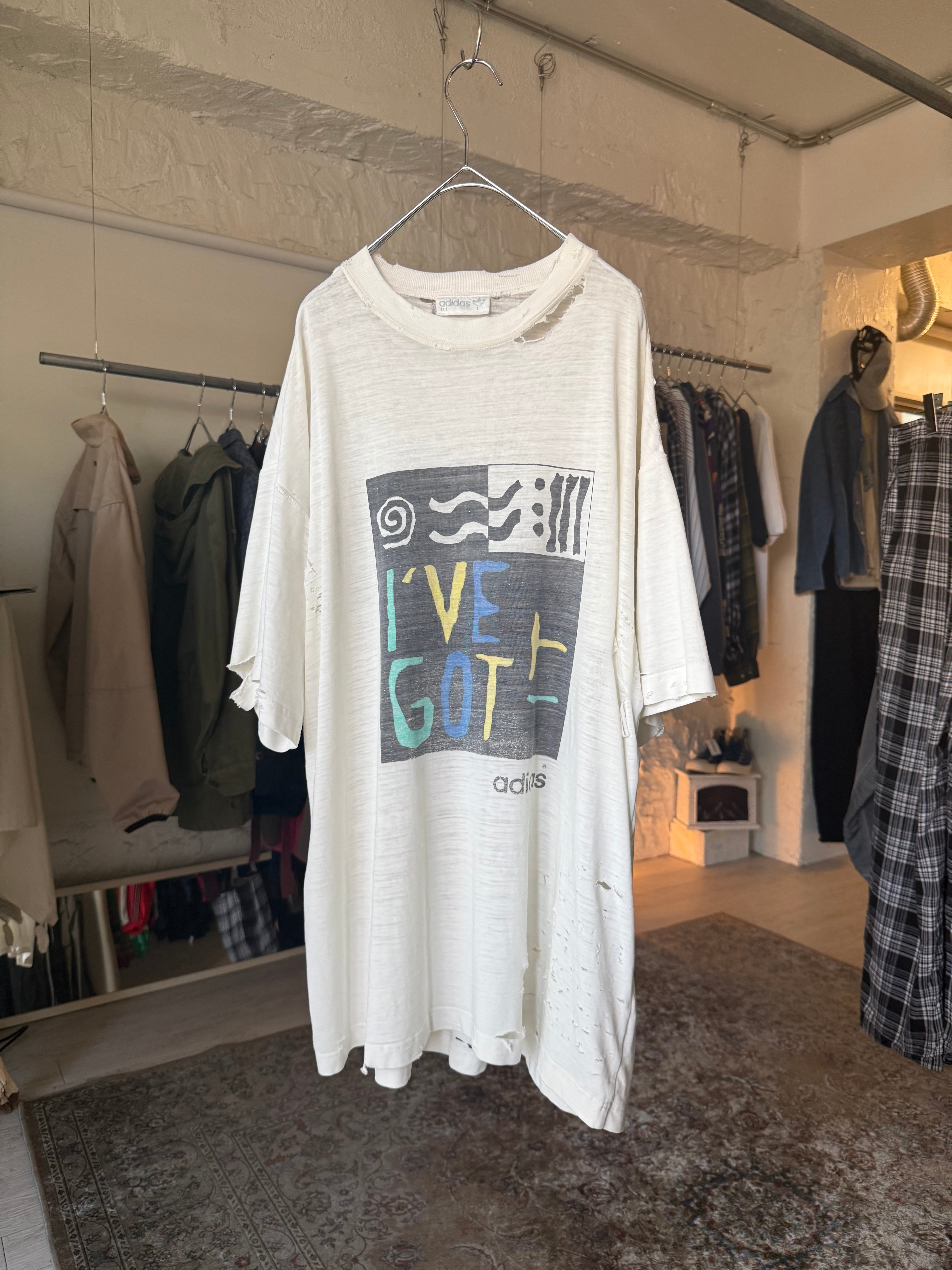 90s vintage adidas art graphic damage t-shirt white