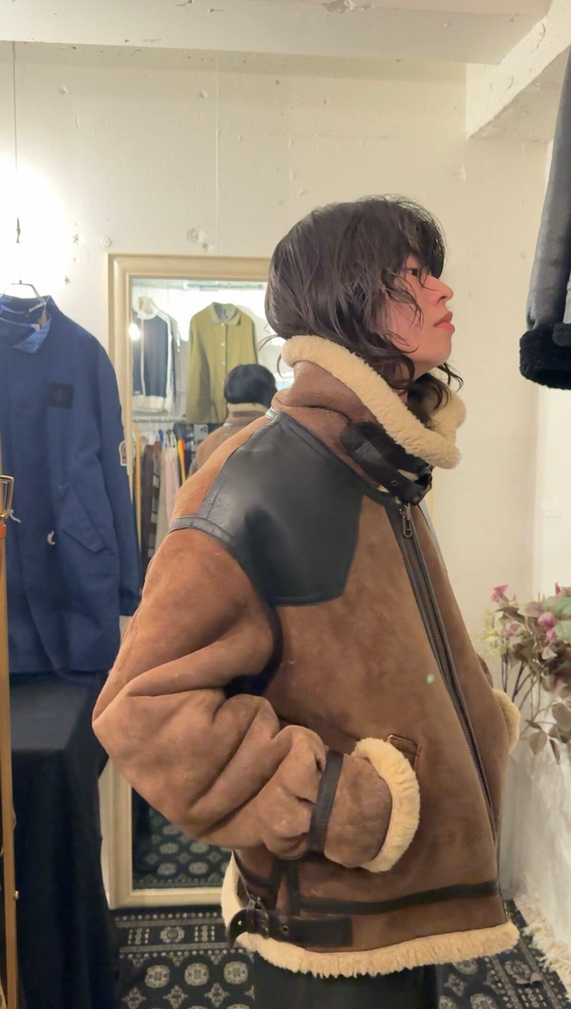 B-3 brown suèdeleather mouton jacket