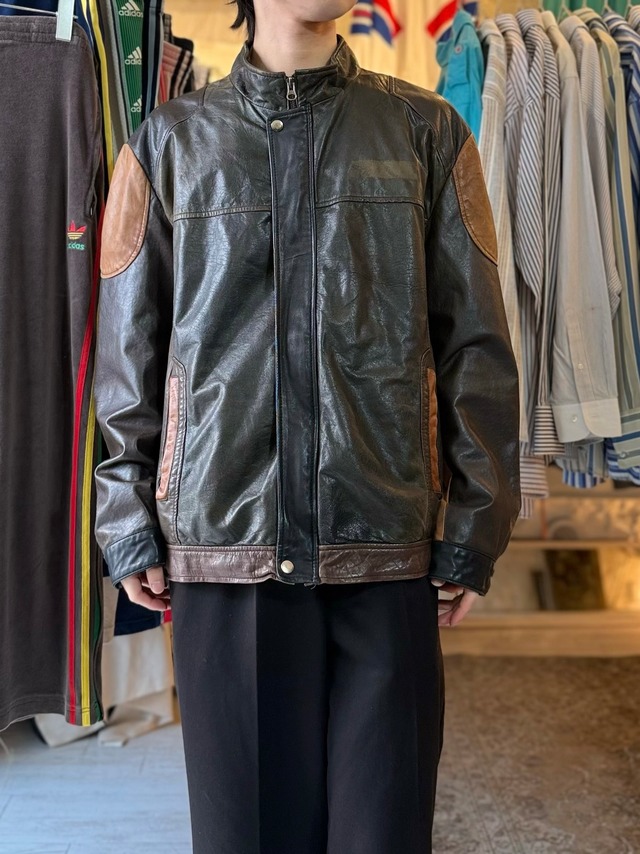 【 モデル170cm 細身 】 【商品説明】 薄手のレザージャケットって感じです デザイン最高です 【size】 表記size XXL 着丈 62cm 身幅 62cm 肩幅 54cm 袖丈 46cm ※平置き寸法 【年代】 【素材】 100% polyester 【生産国】 made in 【コンディション】 『B』 S : 新品またはデッドストック A : 使用感が少なく状態の良い美品 B : 使用感はあるが目立つダメージなし C : 着用に問題ない程度のダメージあり D : ダメージあり ※全て当店基準となります。古着に理解のある方のみご購入ください。